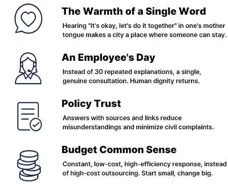 Real-time translation and response for visa, labor, welfare, and life guidance.